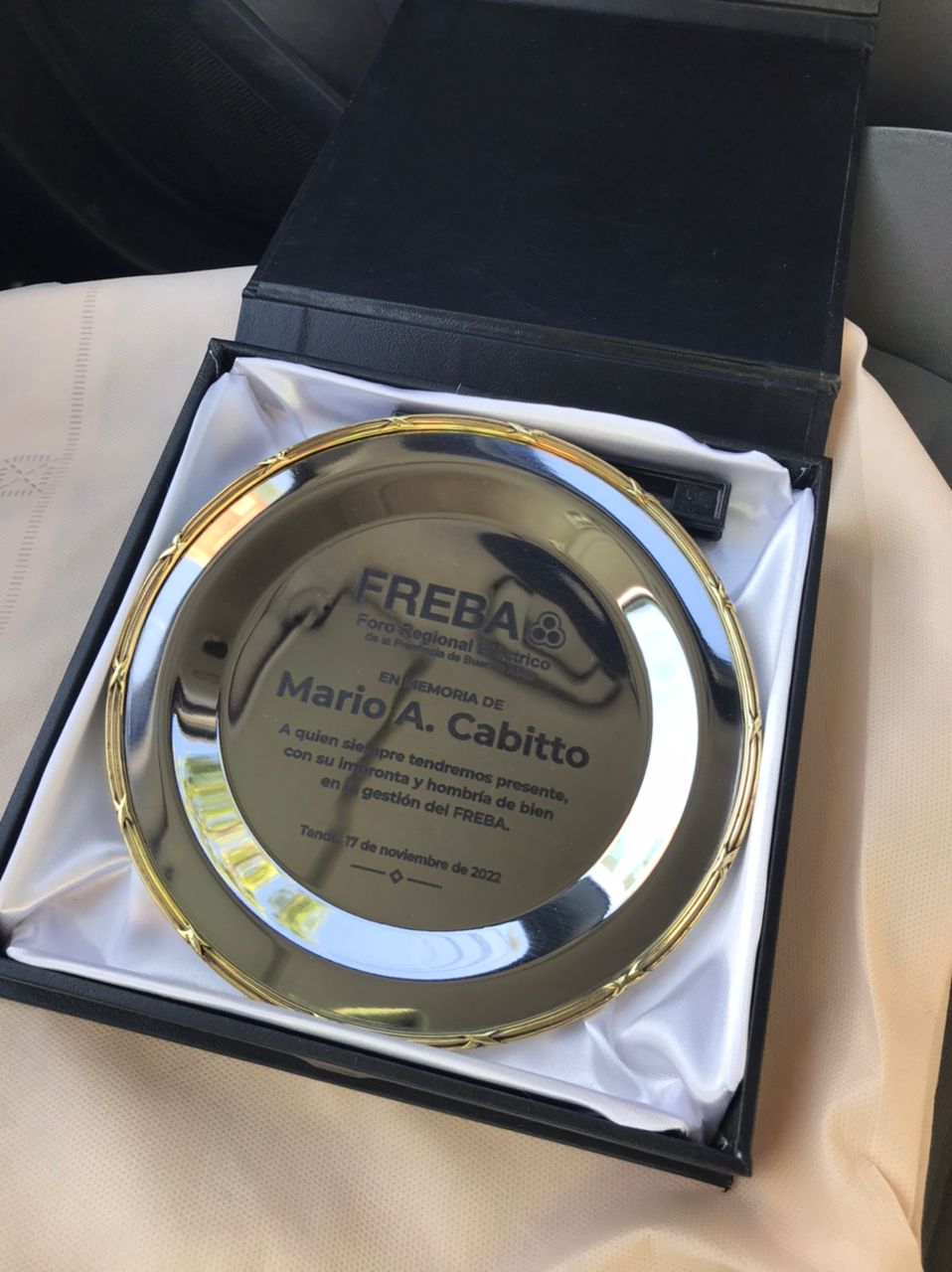 Con mucha emoción en las palabras de todos lo que transmitieron lo que Mario representó para todo el sector eléctrico por su labor, dedicación, profesionalismo y hombría de bien, se hizo entrega por parte del FREBA de un reconocimiento a través de una plaqueta donde quedará grabado por siempre su trayectoria en Foro y un reconocimiento a su familia.