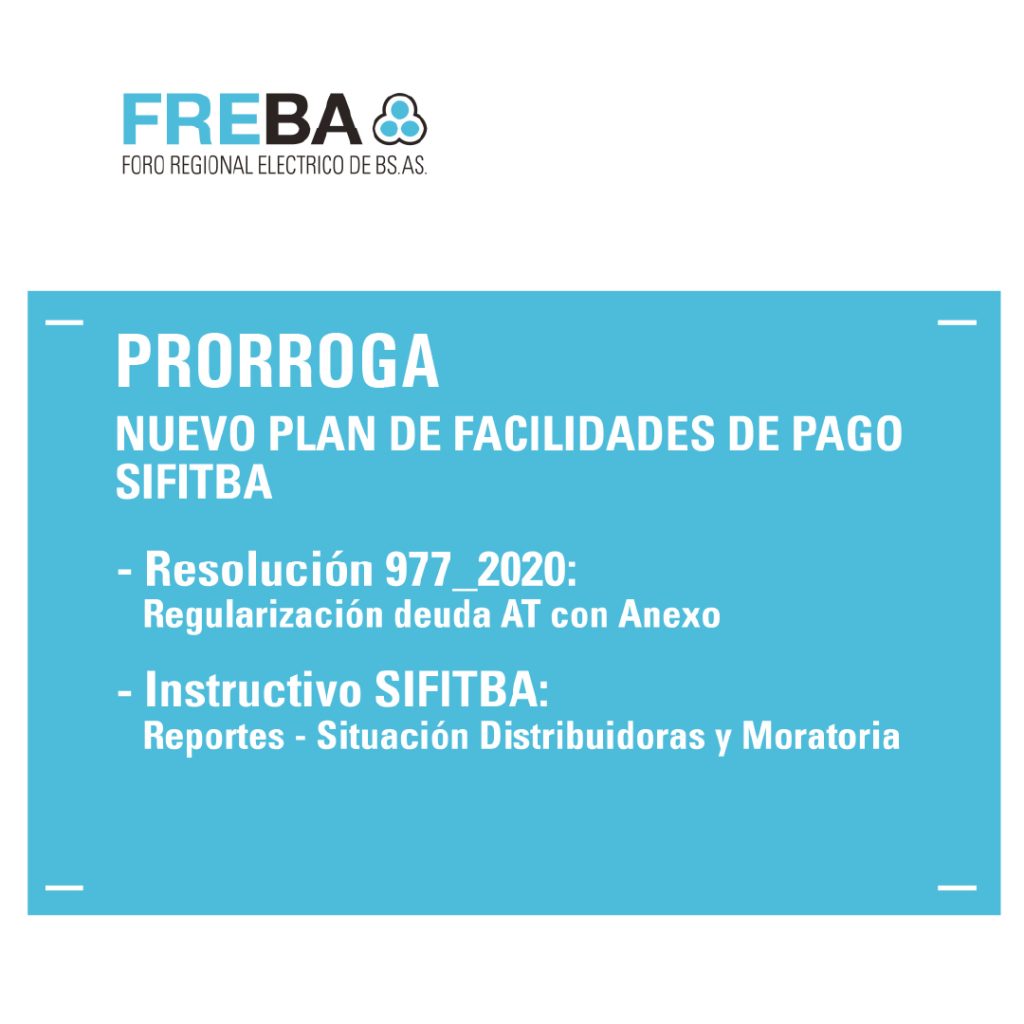 Por intermedio de la presente ponemos en su conocimiento la nota del Ministro de Infraestructura y Servicios Públicos de nuestra provincia, en la cual anuncia que en atención a las gestiones realizadas por el FREBA, se producirá un nuevo acto administrativo ampliando el plazo para adherir a la Res MI 977/2020, con el fin de permitir la adecuada adhesión de los distribuidores provinciales y municipales al plan de regularización dispuesto por la citada Resolución.