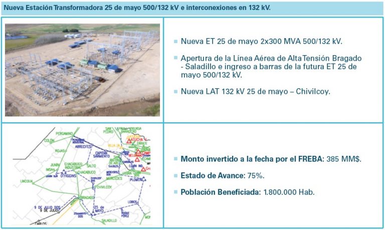 Nueva Estación Transformadora 25 de mayo 500/132 kV e interconexiones en 132 kV. Apertura de la Línea Aérea de Alta Tensión Bragado – Saladillo e ingreso a barras de la futura ET 25 de mayo 500/132 kV. Nueva LAT 132 kV 25 de Mayo – Chivilcoy