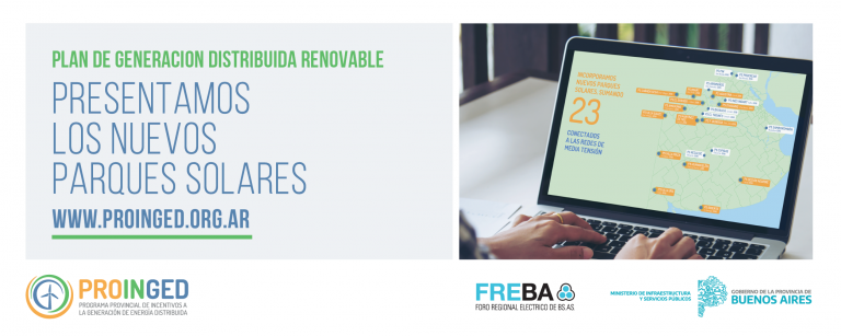 A través del Programa Provincial de Incentivo a la Generación de Energía Distribuida – PROINGED –, un programa de gestión público privada coordinado por el Ministerio de Infraestructura y el Foro Regional Eléctrico de la Provincia de Buenos Aires, incentivamos e impulsamos la generación distribuida, trabajando con las distribuidoras y cooperativas eléctricas provinciales y municipales.