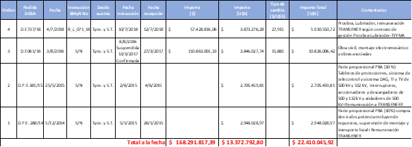 También conviene recordar que el mecanismo de canon recientemente citado, establecía que el pago de las obras de transporte eléctrico debía ser realizado por sus usuarios, recién a partir del momento en que éstas entraban en servicio y con un financiamiento que se extendiera durante los siguientes cinco a siete años. Como ya expresamos, la crisis del 2001-2002 determinó su caducidad, utilizándose en su reemplazo el pago por avance de obra (es decir, la obra se va pagando durante su construcción y éste se completa en coincidencia con la entrada en servicio de la obra).