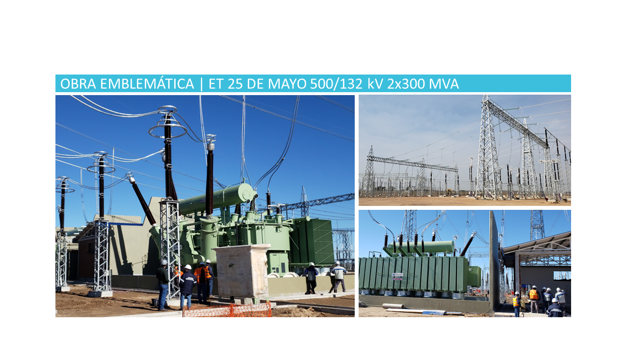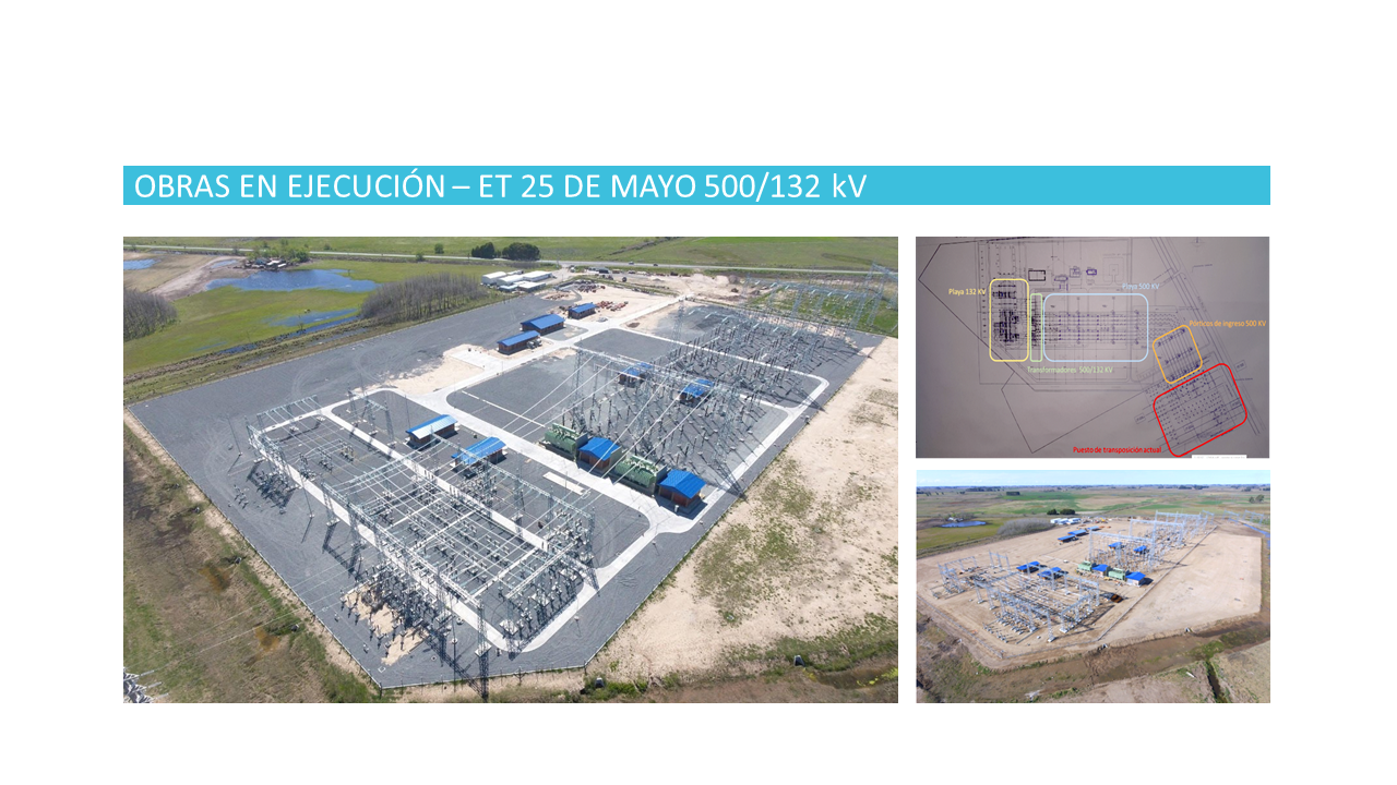 Posteriormente se adjudicó a la firma TEYMA ABENGOA S.A. la ejecución de la Obra Civil y Montaje Electromecánico en ET 25 de Mayo y Obras Asociadas, a la firma PROOBRA S.A. la ejecución de la LAT 132 kV 25 de Mayo-Chivilcoy, incluyendo la apertura de la LAT 132 kV Bragado-Saldillo que permitirá la conexión de la ET 25 de Mayo al sistema eléctrico provincial y a la firma LUBRISIDER S.A. la guarda y almacenamiento de equipos mayores.